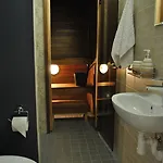 Boendet erbjuder rum med soffa, arbetsbord och te-/kaffebryggare samt duschkabin, separat toalett och badkar i badrummet.